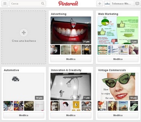 Pin: Immagini organizzate in Board tematiche.
